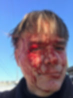 Their clear questions brought my focus back to my church trip. These ladies told me I was covered in blood, which I could see on my right hand, my jacket, and the legs of my dress pants. Not quite grasping how it might look to others, I asked my new friends if they thought I should go on to church like this. A concerned look flashed across their faces. The passenger called the police, and in her description of the scene, I realized I might indeed have a problem. I did then something I hate doing: I took a few selfies. That’s when I found the ladies were oh so right. My face looked like the masterpiece of some gore-loving makeup artist.